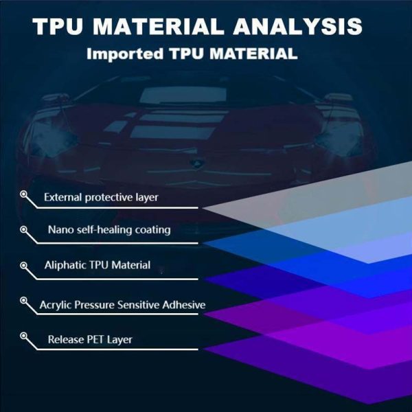 TPU: Like a rubber band, it rebounds no matter how much you stretch it. If hit by a stone at high speed, it absorbs the impact through elastic deformation, protecting the original paint.